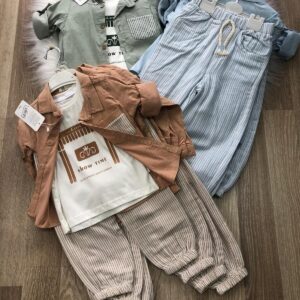 – Üç parçadan oluşan şık takım elbise, erkek çocukların günlük ve özel günlerde rahatlıkla tercih edebileceği bir seçenektir.; – Bağcıklı kemer/kuşak detayı ile modern bir görünüm sunarken, yarım pat düğme kapama şekli pratik kullanım sağlar.; – Gömlek yakası tasarımıyla resmiyetten uzaklaşmadan şıklığı yakalamayı mümkün kılar.; – Chino cep yapısı hem fonksiyonel hem de estetik bir dokunuş katmaktadır; baskısız deseniyle sadeliği ön plana çıkartır.; – Tüm sezonlarda giyilebilen bu takım elbise, mevsim koşullarına uyum sağlayarak her zaman moda olmanızı garanti eder.; – Regular boy kesimi sayesinde konforlu bir oturuşa sahip olan pantolon, hareket özgürlüğü tanırken stilinizi korumanızda yardımcı olur.; – Dokuma kumaşı dayanıklılığı arttırarak uzun süreli kullanım imkanı sunarken, %100 pamuk materyali cildinize nazik davranır.; – Standart kol tipi ile günlük aktivitelerinizde rahat etmenizi sağlarken, uzun kol boyu serin havalarda ekstra koruma sunar.; – Gömlek-pantolon alt-üst takımı olarak tasarlanmış bu set, kombin yapmayı kolaylaştırarak zamandan tasarruf etmenize olanak tanır.; İÇERİK:GÖMLEK PANTOLON TİŞÖRT