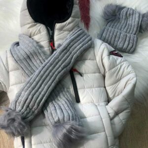 Kız Çocuk Erkek Çocuk Gri Atkı Bere Takımlı Mont Kaban