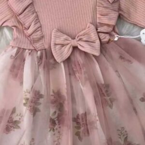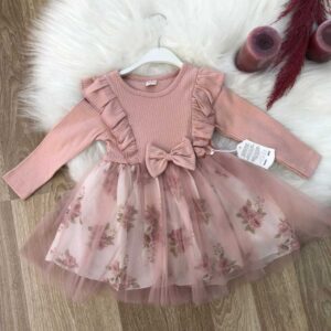 Kız Çocuk Gül Kurusu Tül Pamuklu Uzun Kol Özel Gün Doğum Günü Abiye Hediye Günlük Prenses Elbise