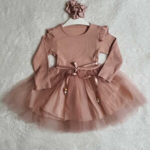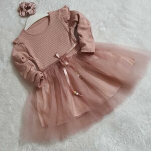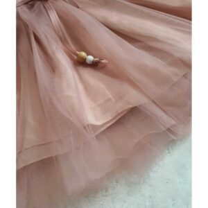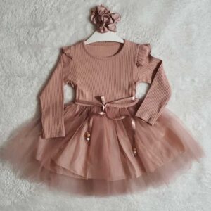 Kız Çocuk Gül Kurusu Tül Pamuklu Uzun Kol Özel Gün Doğum Günü Abiye Hediye Günlük Prenses Elbise