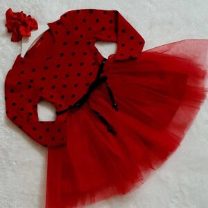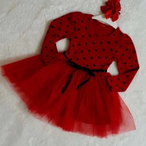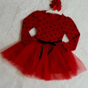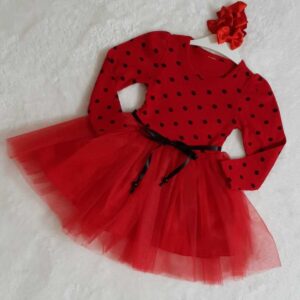 Kız Çocuk Kırmızı Uzun Kol Puantiyeli Doğum Günü Özel Gün Yılbaşı Hediye Abiye Günlük Prenses Elbise