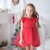 Kız Çocuk Kırmızı Uzun Kol Puantiyeli Doğum Günü Özel Gün Yılbaşı Hediye Abiye Günlük Prenses Elbise