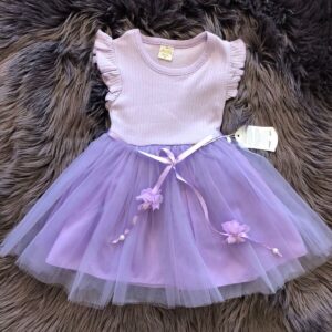 Kız Çocuk Özel Gün Doğum Günü Günlük Yılbaşı Hediye Abiye Pamuklu Tül Prenses Lila Elbise