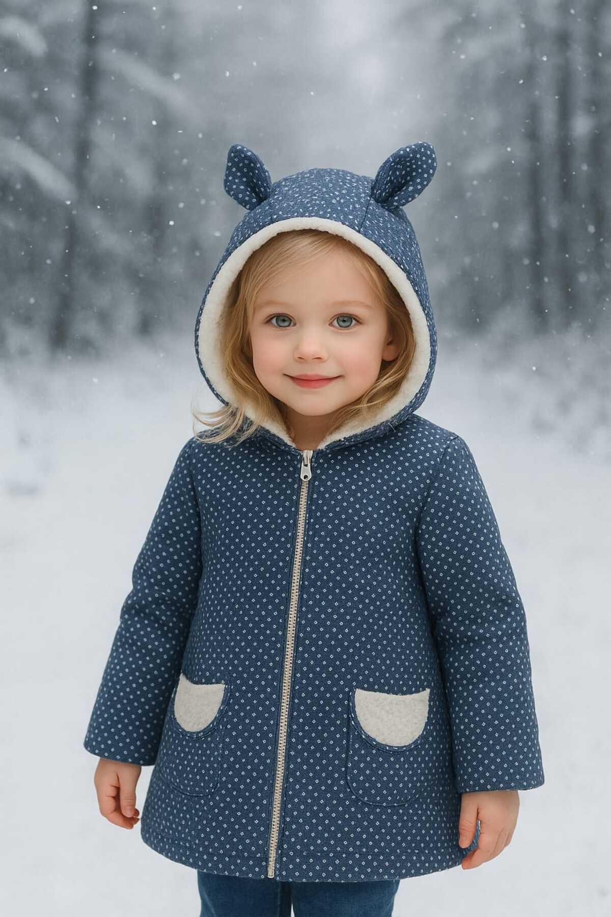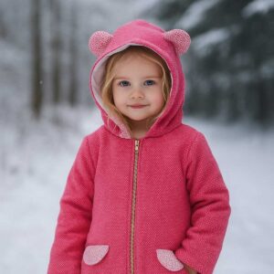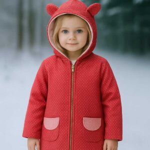 Kız Erkek Çocuk Bebek Pembe Kırmızı Lacivet Puanlı Desenli Kapüşonlu Sevimli Şık Kaban Mont