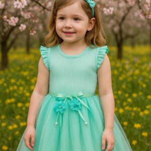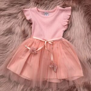 Kız Çocuk Gül Kurusu Tül Pamuklu Uzun Kol Özel Gün Doğum Günü Abiye Hediye Günlük Prenses Elbise