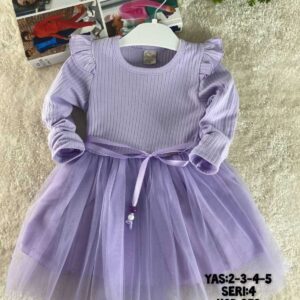 Kız Çocuk Kat Kat Tütülü Pamuklu Uzun Kollu Mor Özel Gün Abiye Doğum Günü Günlük Prenses Elbise