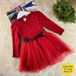 Kız Çocuk Kırmızı Uzun Kol Puantiyeli Doğum Günü Özel Gün Yılbaşı Hediye Abiye Günlük Prenses Elbise