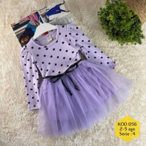 Kız Çocuk Mor Puantiyeli Uzun Kollu Tütülü Abiye Doğum Günü Özel Gün Hediye Günlük Prenses Elbise