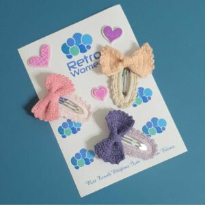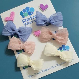 Kız Çocuk Bebek Örgü Yün Tül Fiyonk Doğum Günü Yılbaşı Hediye Üçlü Sevimli Çıtçıt Klips Toka Seti